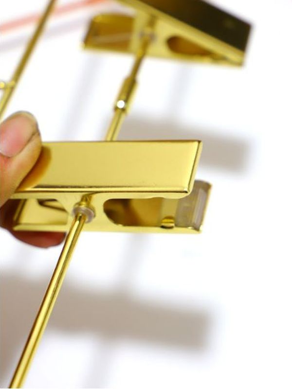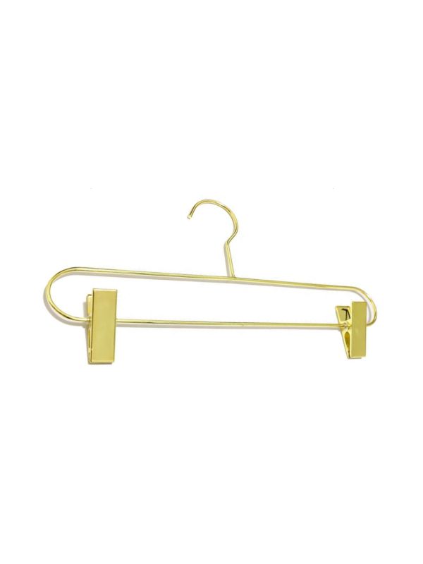 Sold as single units, these strong and durable clip hangers are made from stainless steel and electroplated with a gold metal finish. Features two clips for skirts and pants.